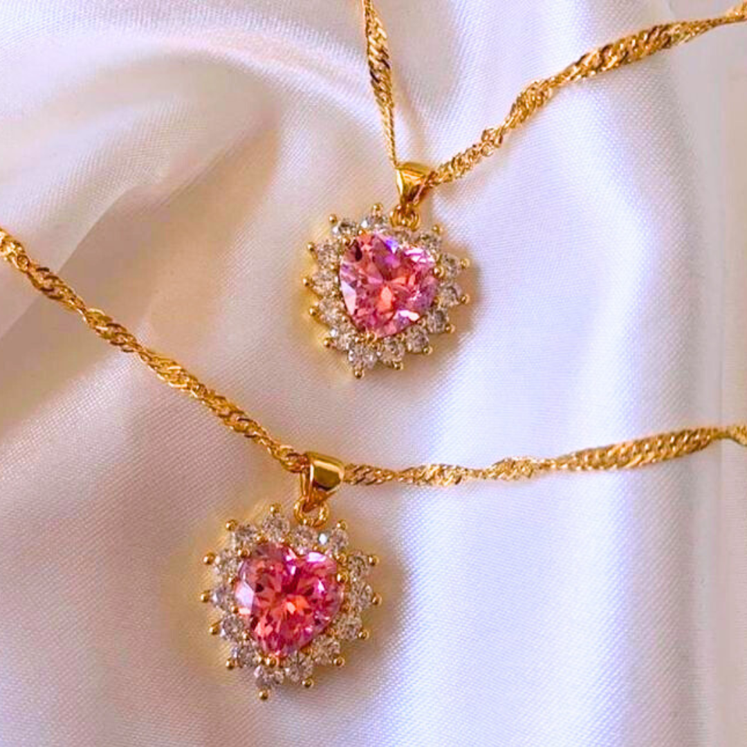 💖 עיצוב מושך תשומת לב: השילוב של לב ורוד חי ויהלומים מנצנצים הופך את השרשרת לאביזר שמושך הערצה.