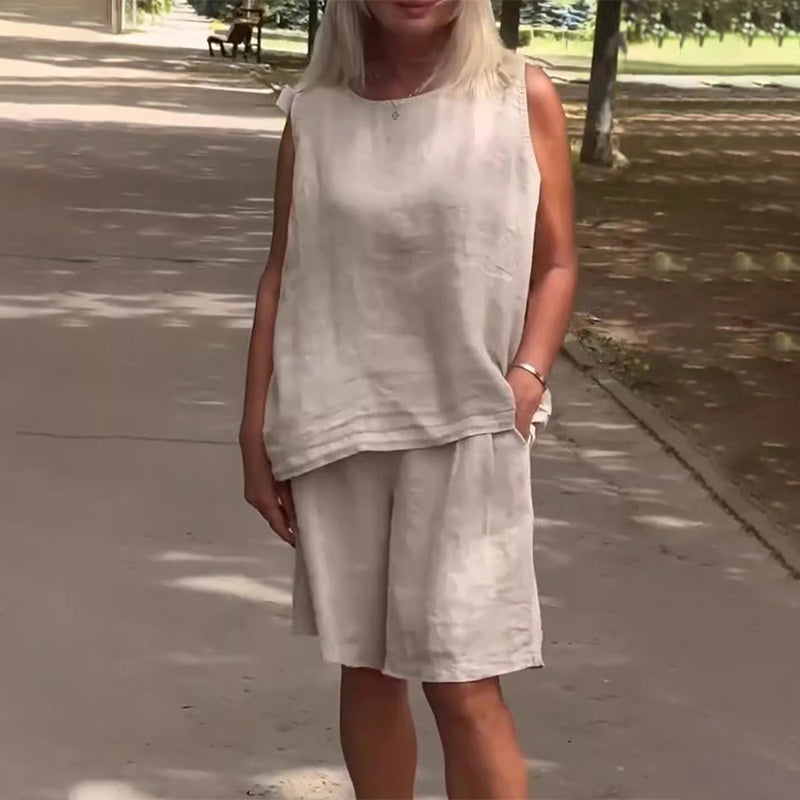 תערובת אוורירית - עשוי מתערובת קלה ונושמת של פשתן וספנדקס, סט זה ישמור עליך קריר ונוח, מושלם למזג אוויר חם או לשימוש יומיומי.