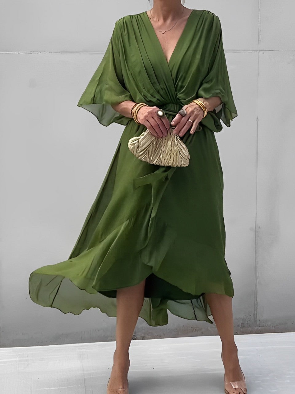 ✔ מושלם לכל סוגי הגוף - עם מחשוף V עמוק, מותן מותאם וחצאית זורמת, הבגד הזה מדגיש את הקימורים שלך ומשלים את צורת הגוף שלך בצורה מושלמת!