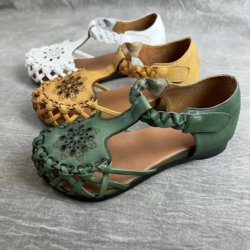תיאור: היכנסו לעונה באלגנטיות ונוחות עם סנדלי הקאטוורק המעוצבים על ידי אמנים. זמינים בירוק זוהר, לבן קלאסי וחום אלגנטי, הנעליים השטוחות הללו מתאימות לכל הופעה, מחצאיות קז'ואליות ועד שמלות אלגנטיות.